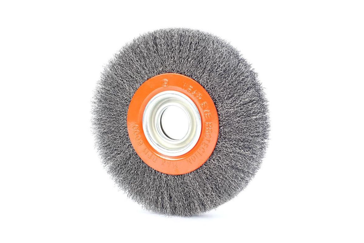 круглая проволочная щетка для точила для снятия лака, краски, зачистки ржавчины. Наружный диаметр 175мм, посадка 32мм/30мм/25,4мм/20мм/16мм, гофрированная проволока