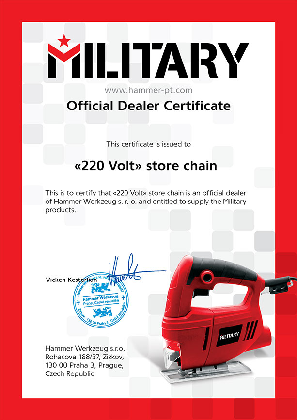 Military — марка бытового электроинструмента и оборудования бюджетного класса для ремонта и строительных работ. Инструмент Military удобный, функциональный и без излишеств: в нем сознательно отказались от ненужных решений, которые увеличивают стоимость. Соответствие регламенту Таможенного союза (ЕАС) подтверждено необходимыми сертификатами.